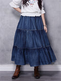 Women's Retro Hand-Embroidered Blue Denim A-Line Dress