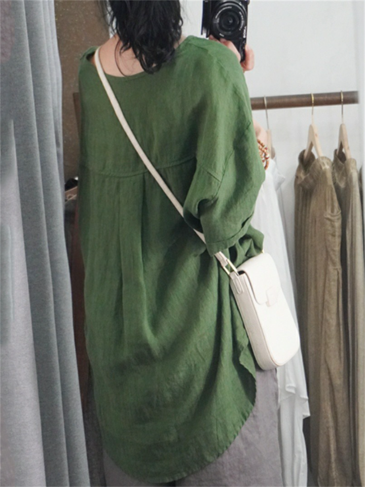 Loose V Neck Half Sleeve Breathable Simple Linen Shirt for Women