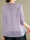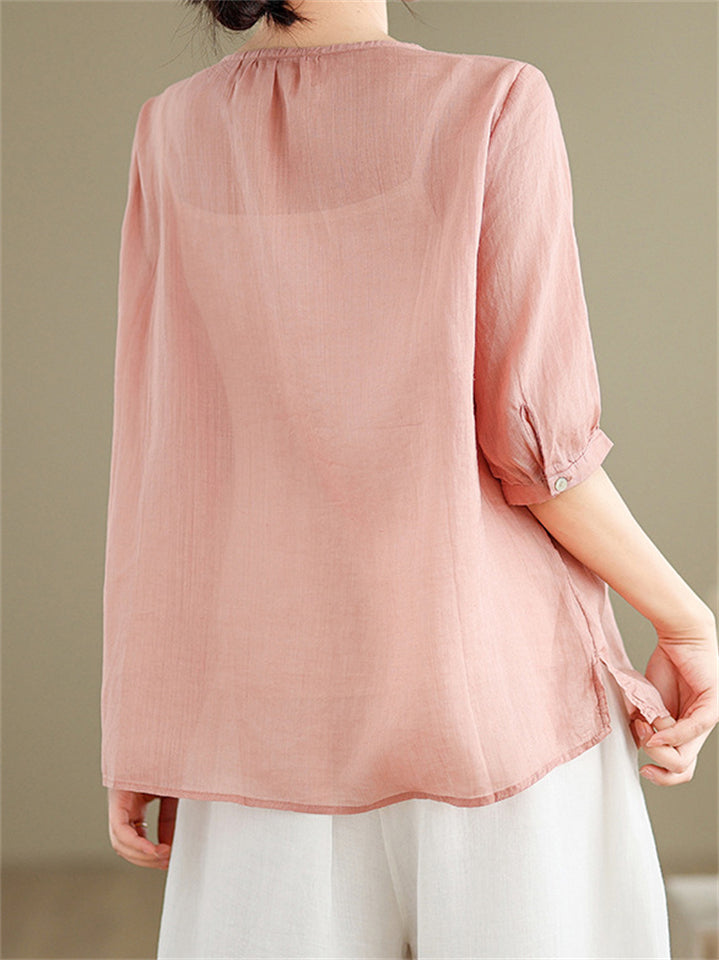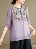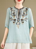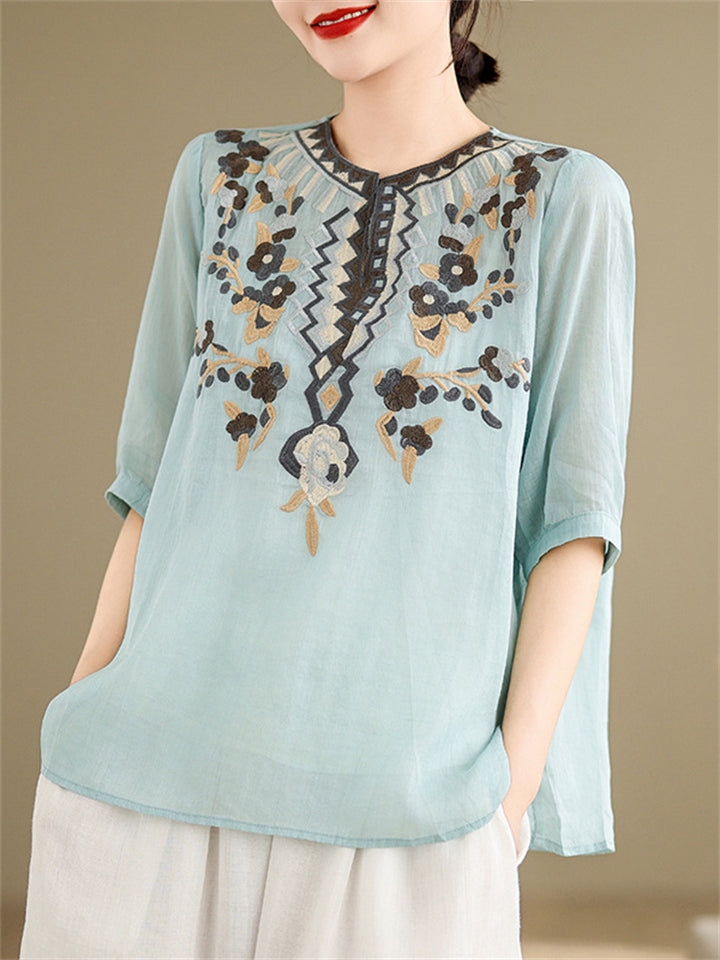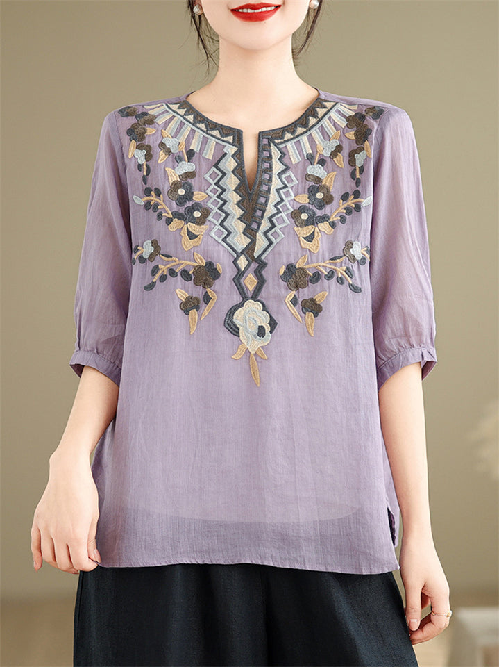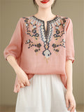 Loose Women's V-Neck Ethnic Style Embroidered Shirts