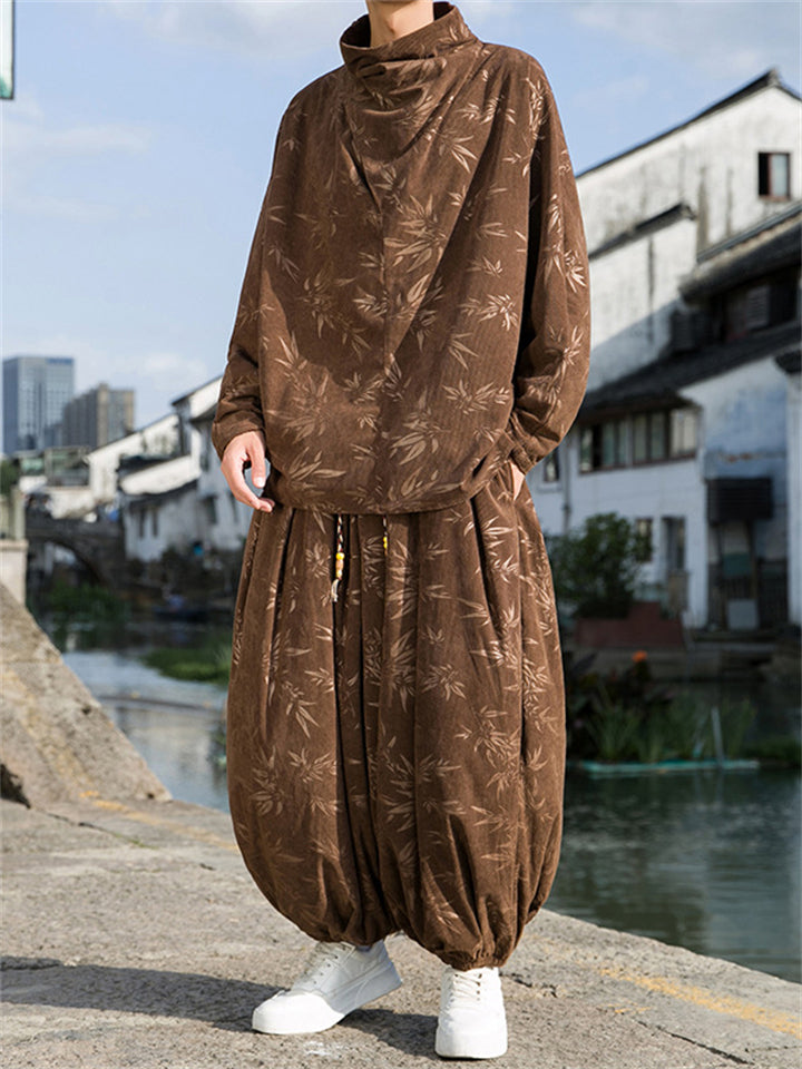 Male Bamboo Leaves Pullover T-shirt & Pants Corduroy Outfits