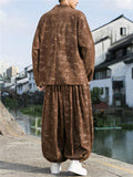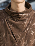 Male Chinese Style Bamboo Leaf Flower Print Corduroy Coats