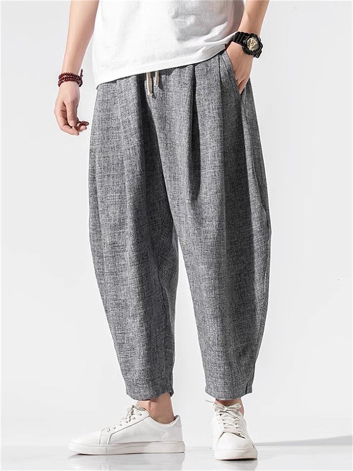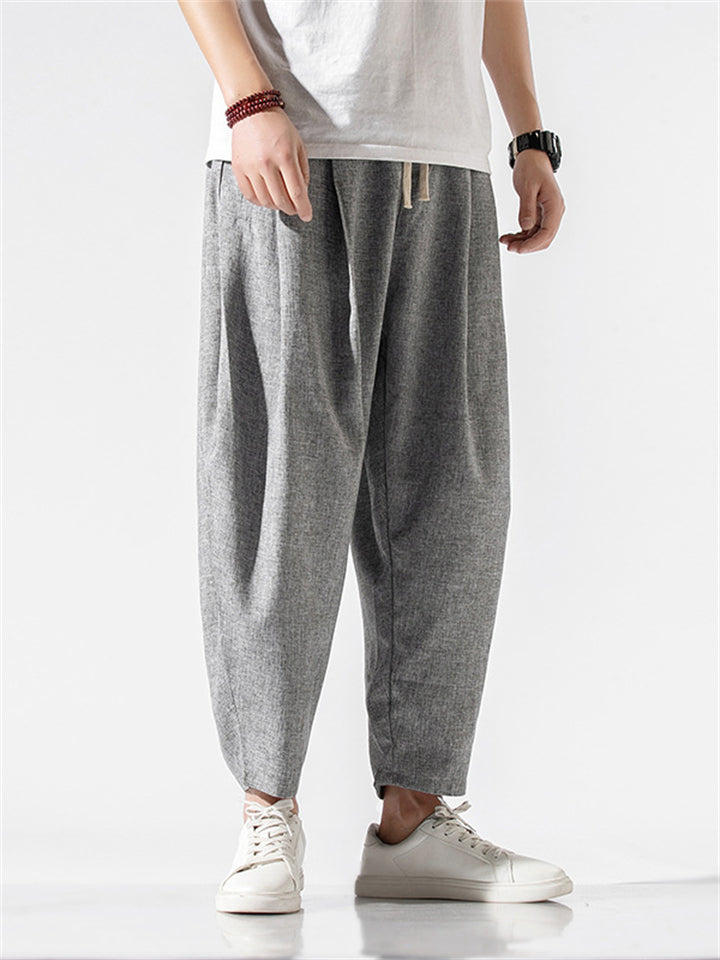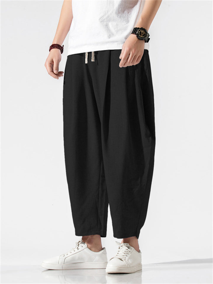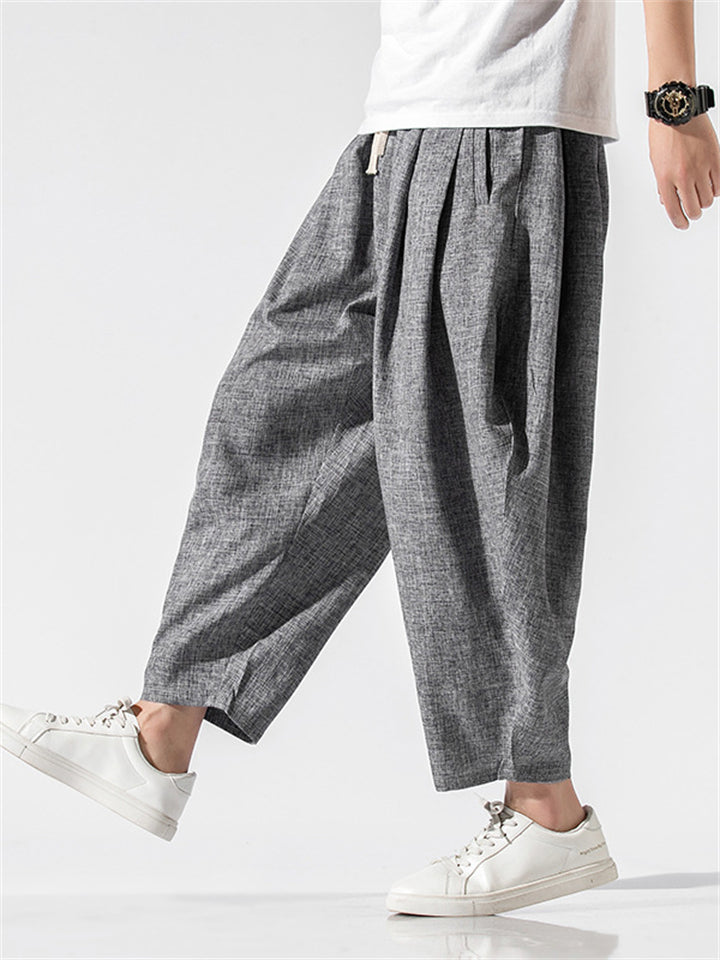 Male Chinese Style Relaxed Summer Wide Leg Pants