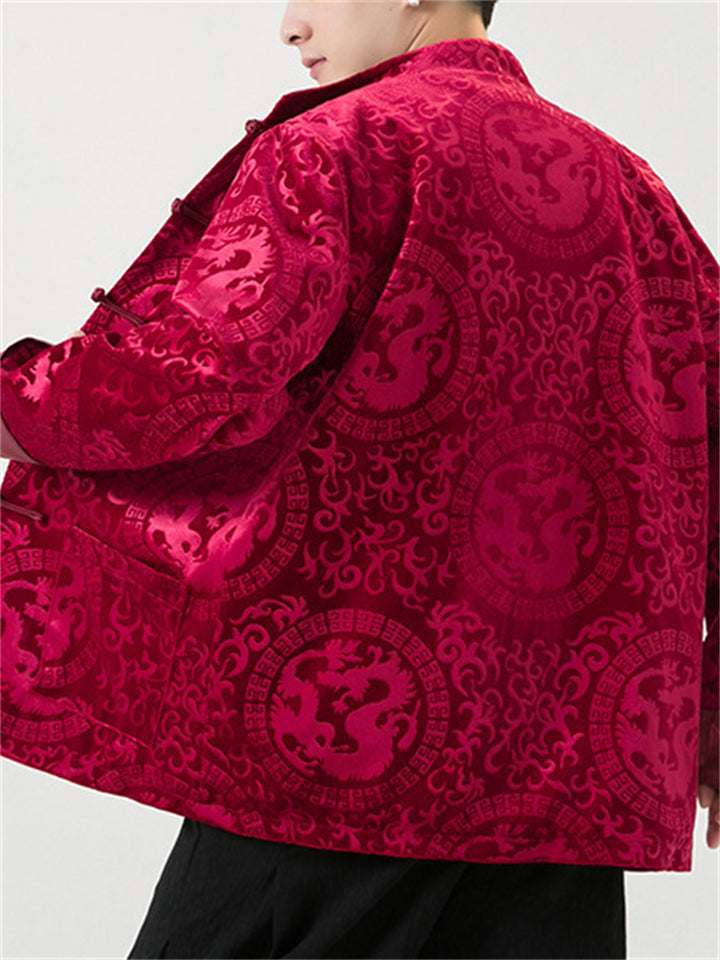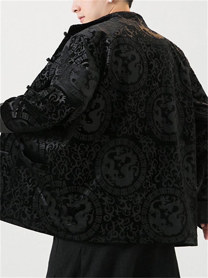 Men's Vintage Stand Collar Warm Padded Coat for Chinese New Year