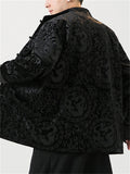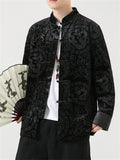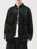 Male Chinese Style Bamboo Leaf Flower Print Corduroy Coats