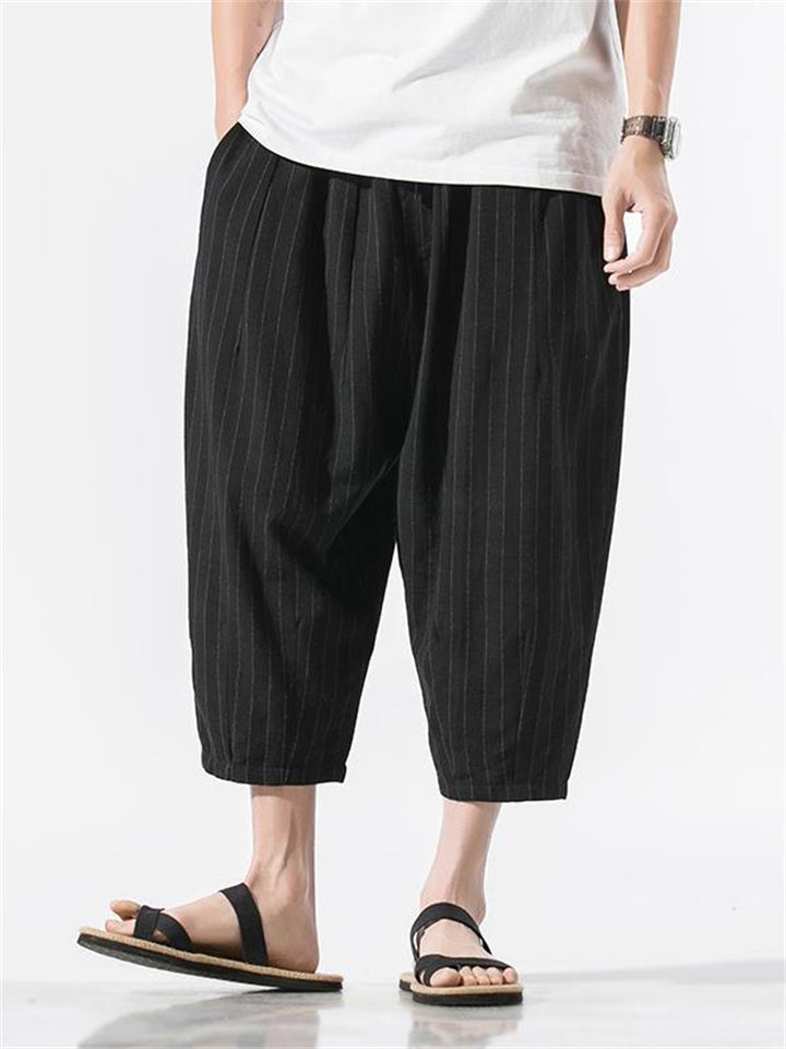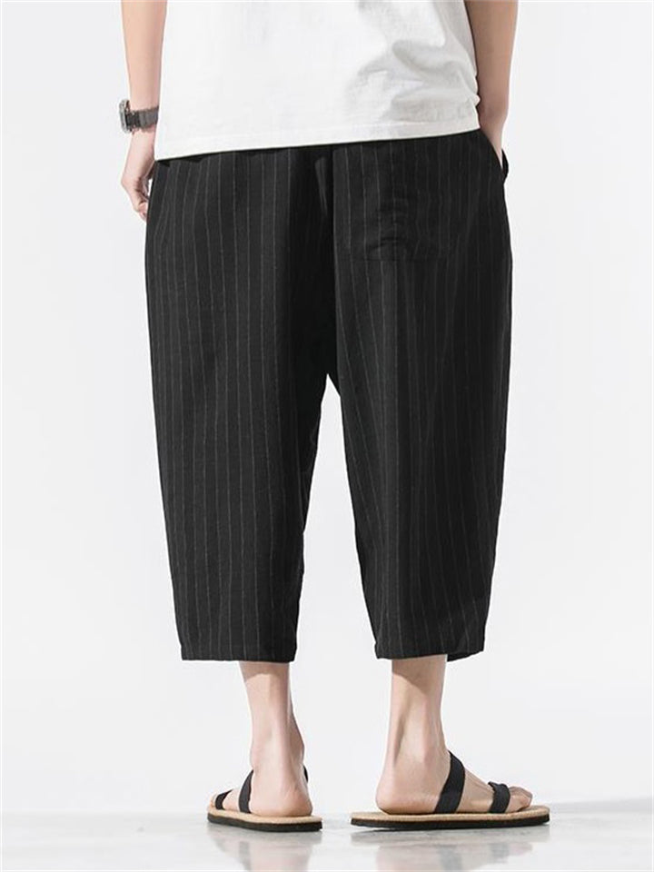 Male Summer Lightweight Vertical Striped Cropped Pants