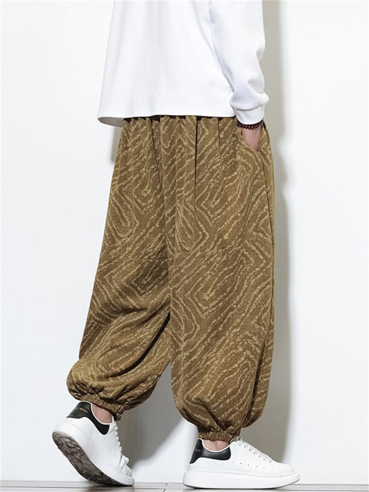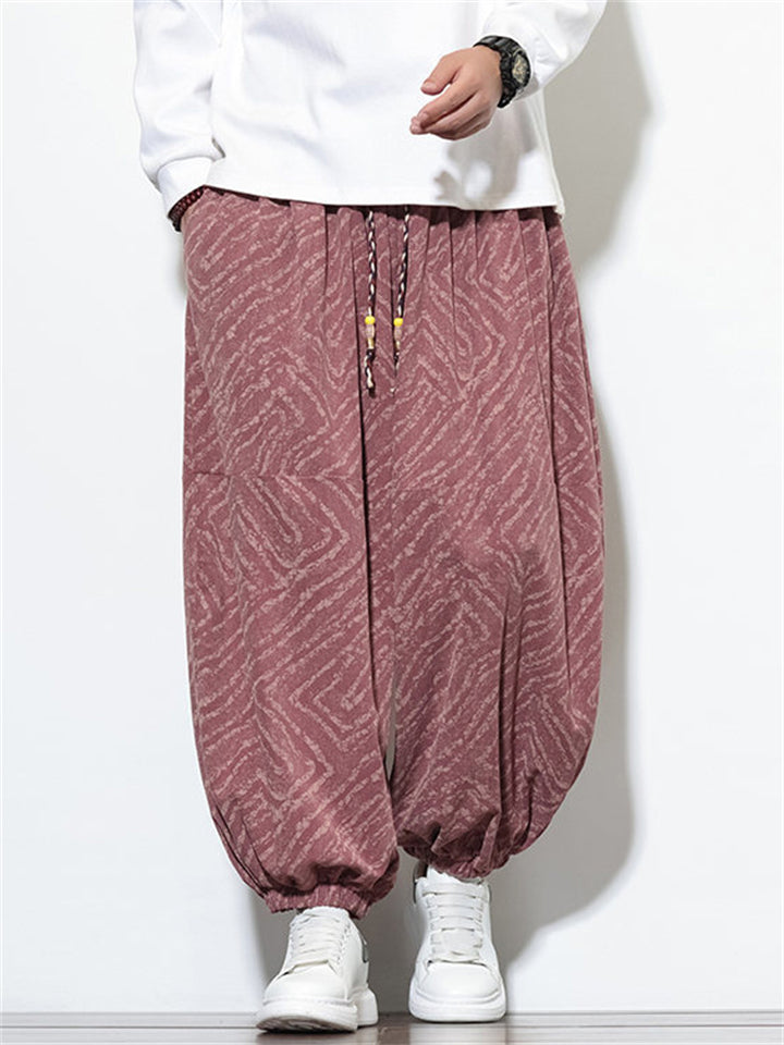 Male's Retro Geometric Texture Printed Wide Leg Bloomers Pants