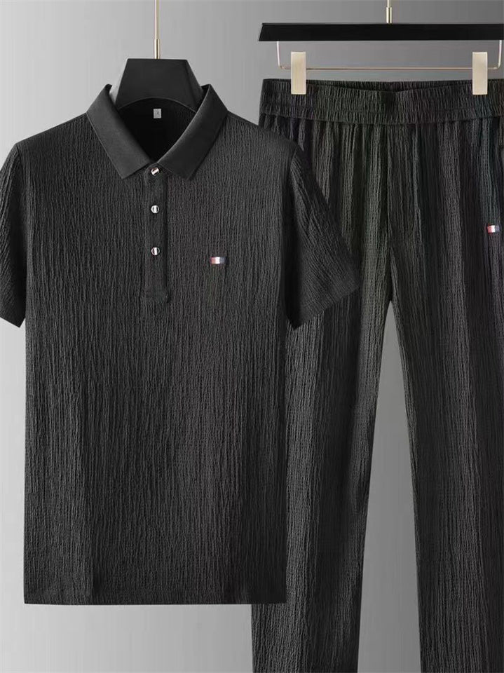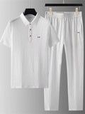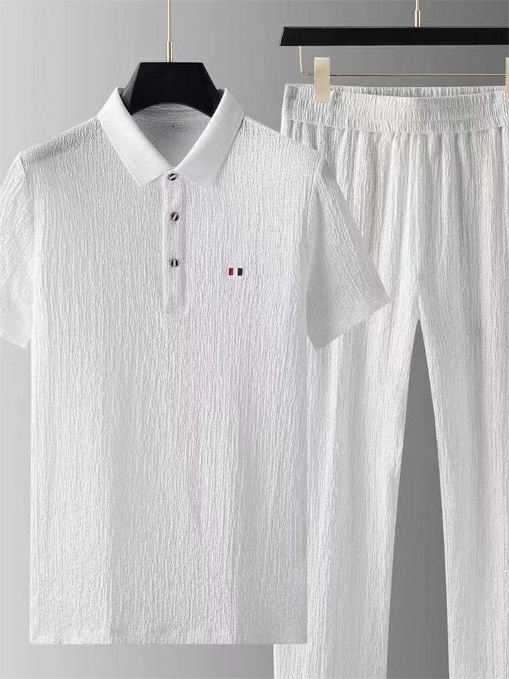 Men's 2Pcs Cool Texture Polo Collar Short Sleeve Solid Color Outfits