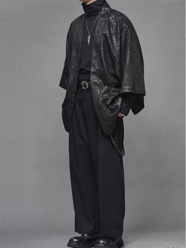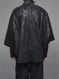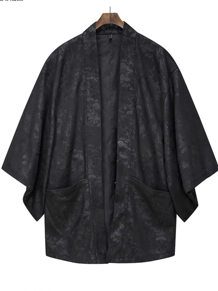 Retro Black Zen Style Print Faux Suede 3/4 Sleeve Cardigan for Men