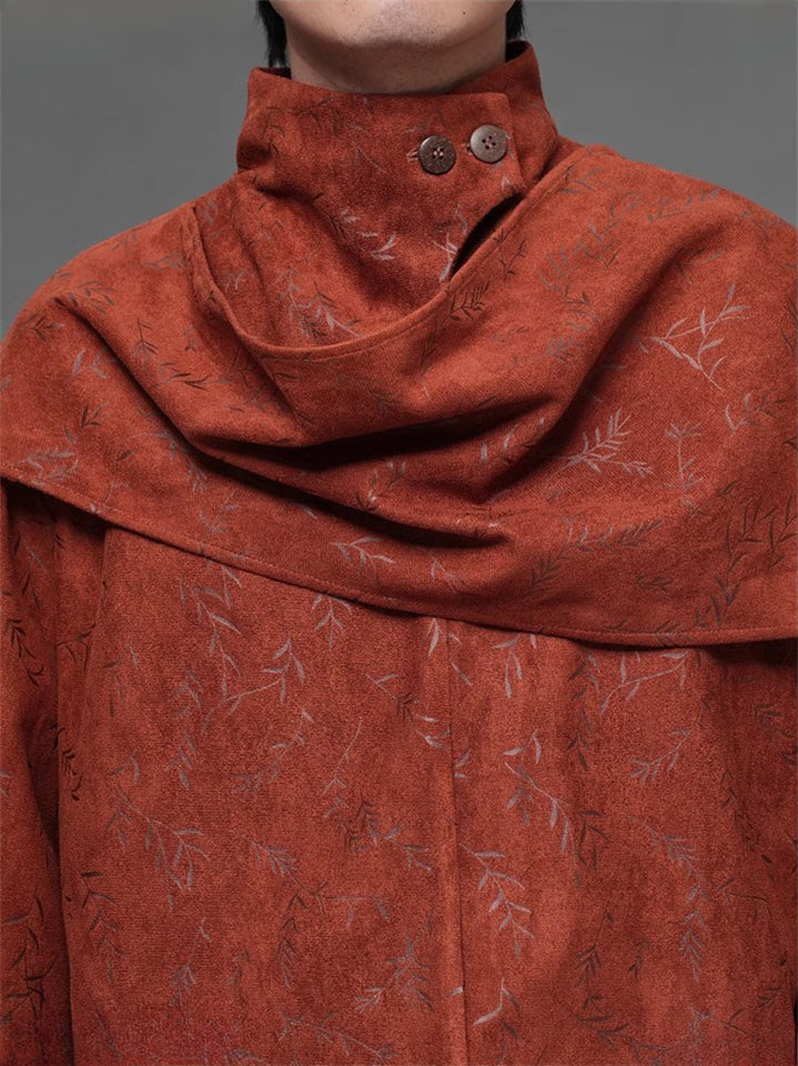 Male Chinese Style Bamboo Leaf Flower Print Corduroy Coats