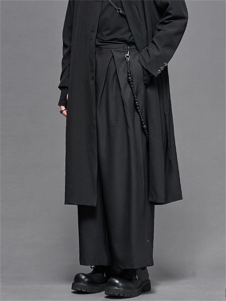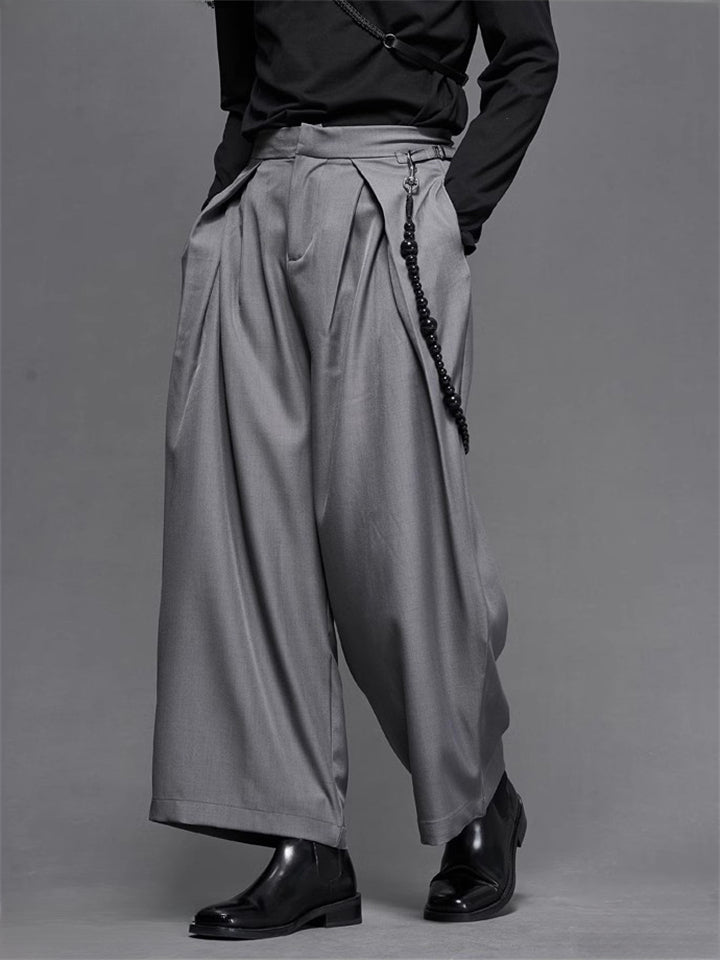 Retro Japanese Style Wide Leg Pleated Pants for Men