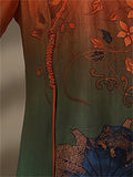 Women's Elegant High-Rise Side Slit Blue Denim Embroidery Qipao