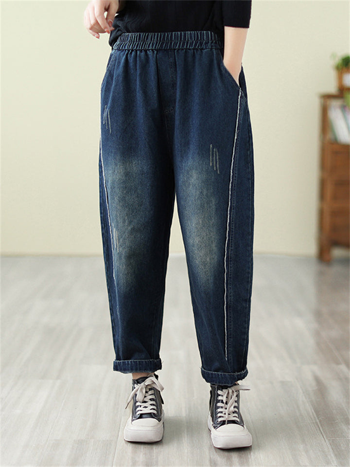 Spring Autumn Female Stylish Elastic Waist Jeans