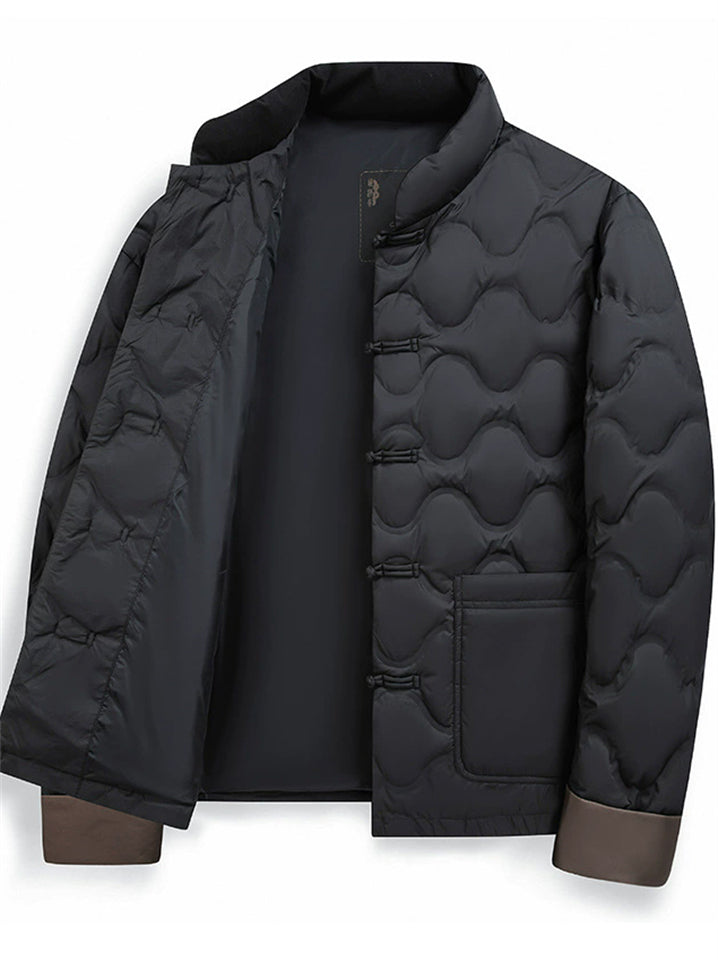 Men's Chinese Style Contrast Cuff Quilted Down Coat