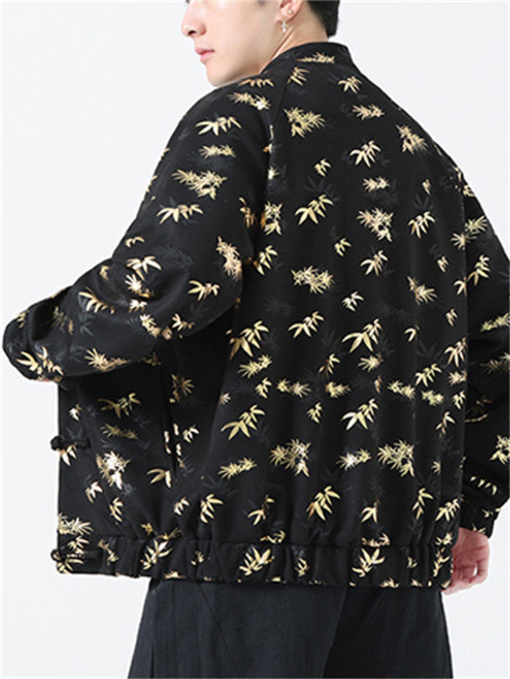 Men's Autumn Chinese Style Leaves Print Frog Button Jackets