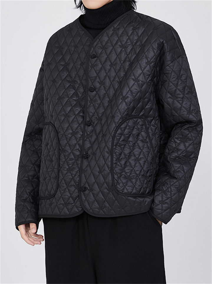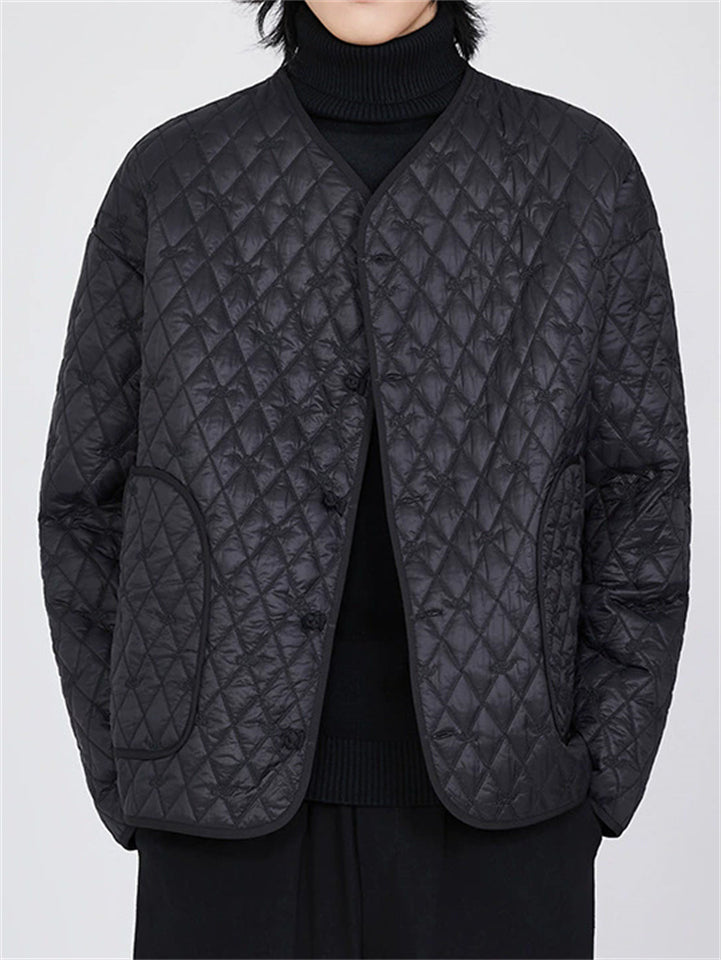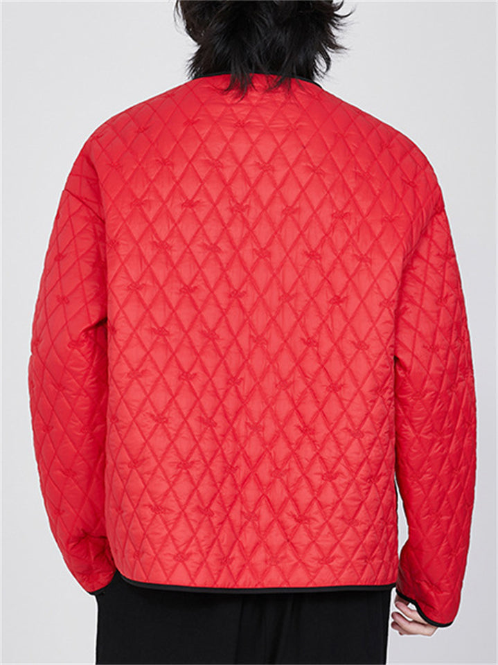 Men's Contrast Trim Mandarin Collar Tang Suit Quilted Liner Jacket