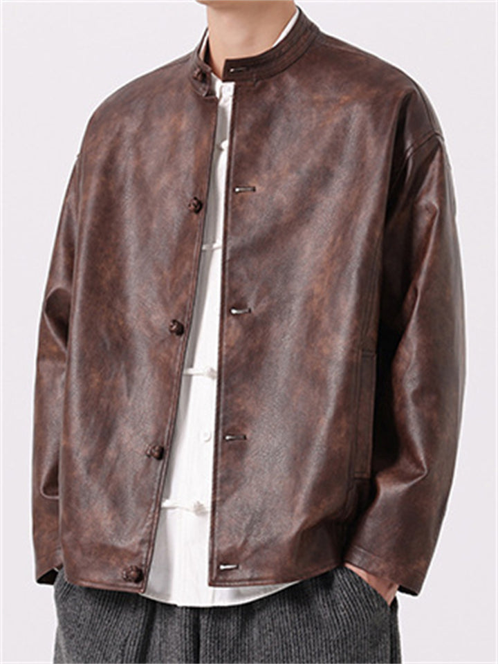 Men's Trendy Chinese Style Mandarin Collar Faux Leather Jackets