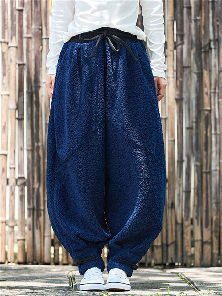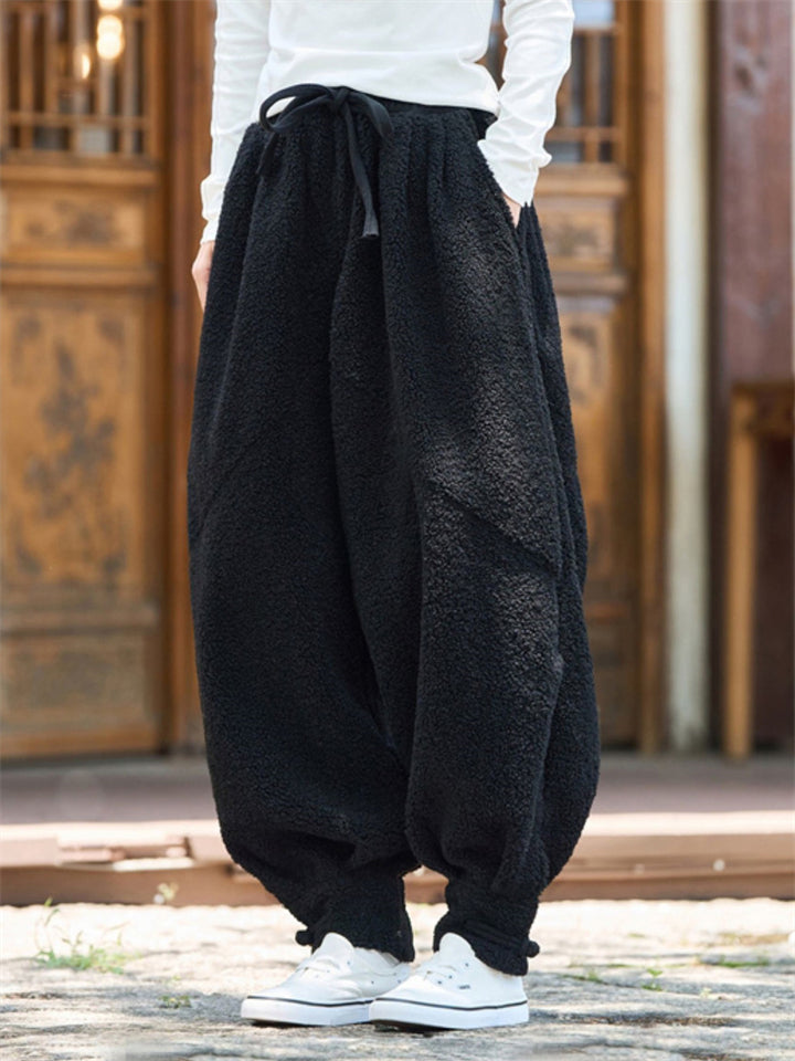 Winter Casual Fleece Elastic Waist Wide Leg Jogger Pants for Men