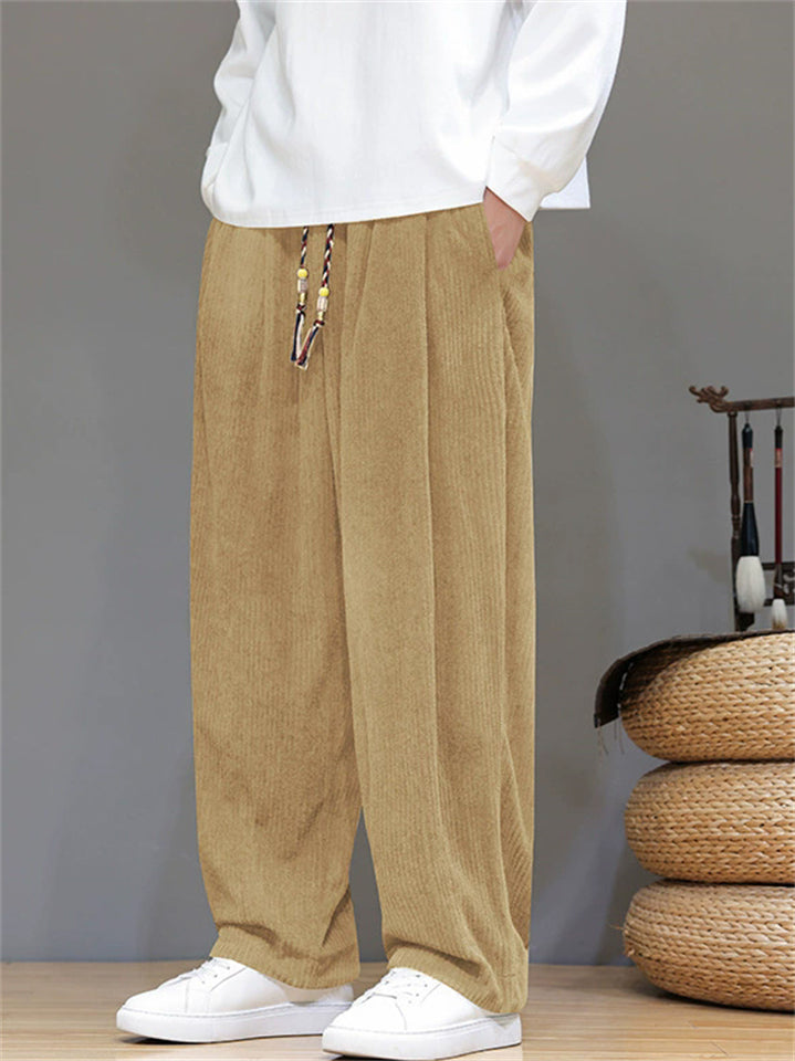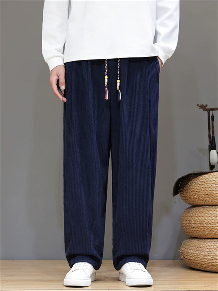 Men's Casual Drawstring Loose Fit Corduroy Straight Leg Pants