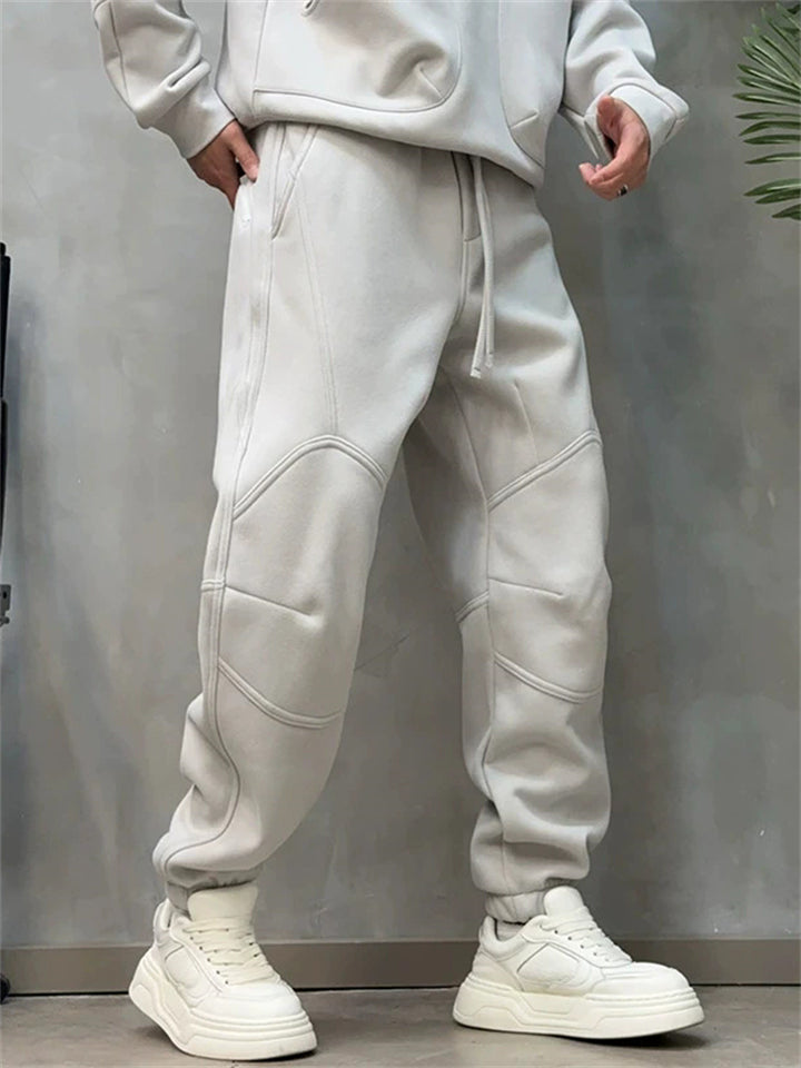 Unisex Casual Drawstring Straight Leg Pants with Plush Lining