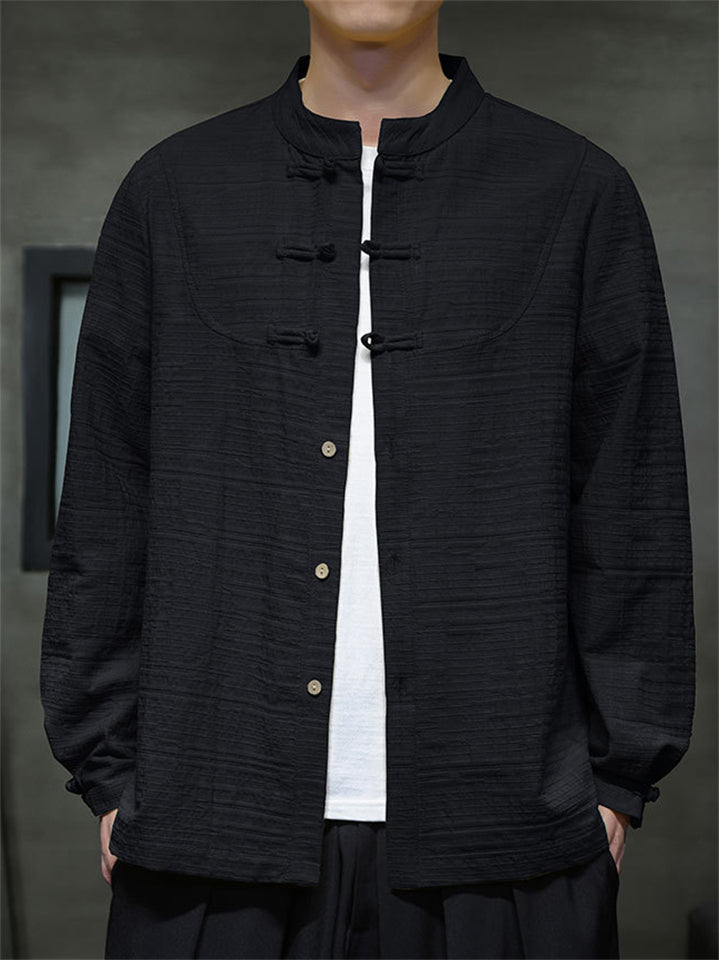 Men's Chinese Style Jacket with Stand Collar and Dual Buttons Details