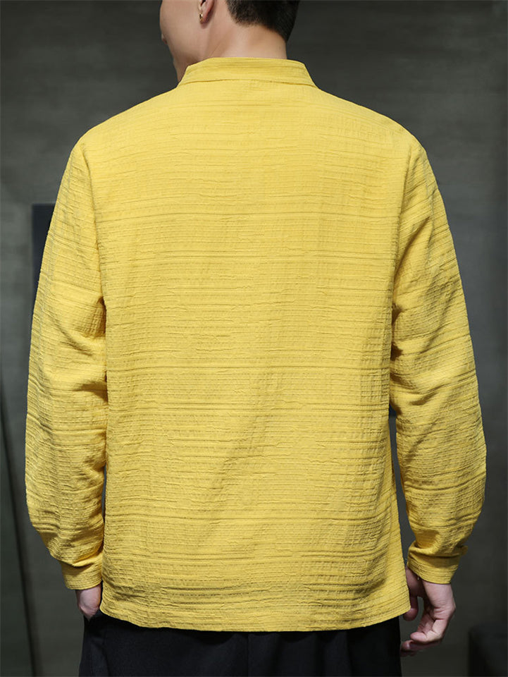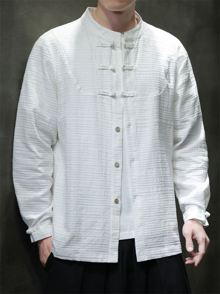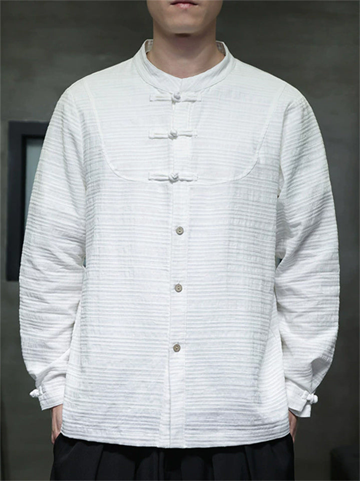 Men Chinese Style Linen Cotton Stand Collar Long Sleeve Shirts