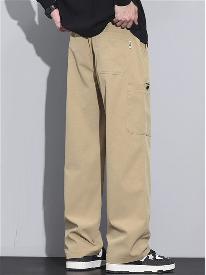 Daily Wear Casual Elastic Waist Loose Fit Straight Leg Pants for Men