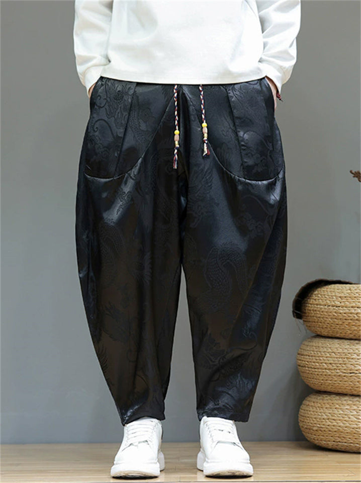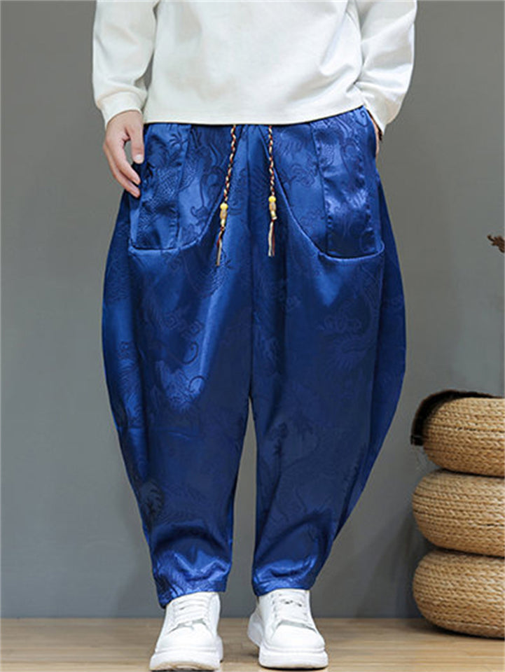Men's Chinese Style Trendy Loong Print Wide-leg Bloomers Pants