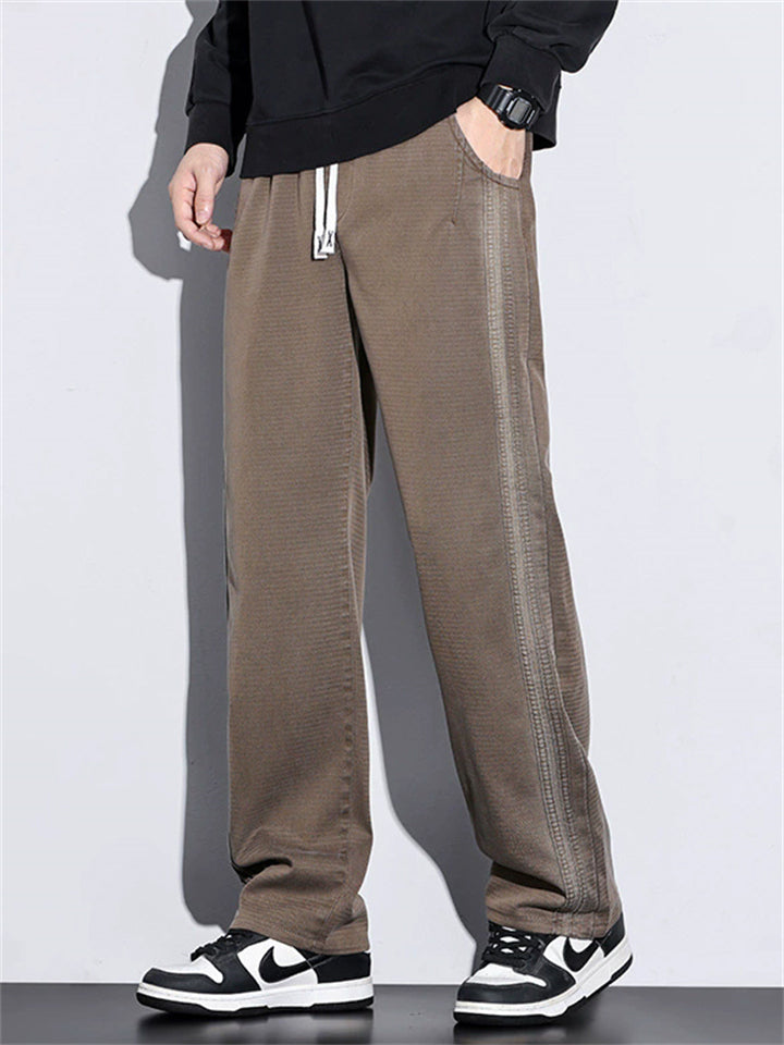 Men's Retro Straight Leg Striped Casual Pants with Elastic Waist