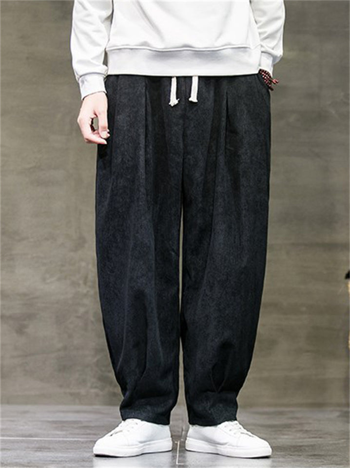 Men's Autumn Retro Loose Fit Corduroy Casual Wide Leg Pants