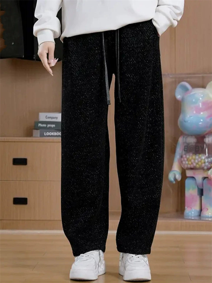 Unisex Casual Drawstring Straight Leg Pants with Plush Lining