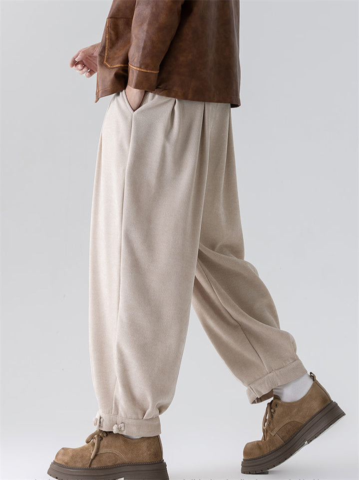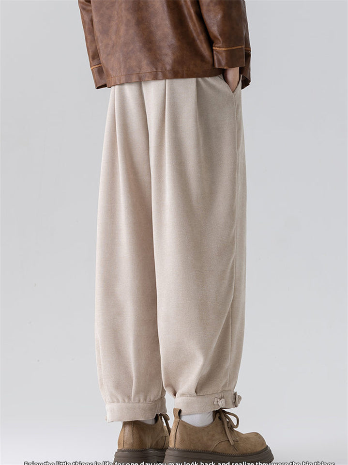 Winter Comfy Elastic Waist Wide Leg Pants for Men with Buttons Details Cuff
