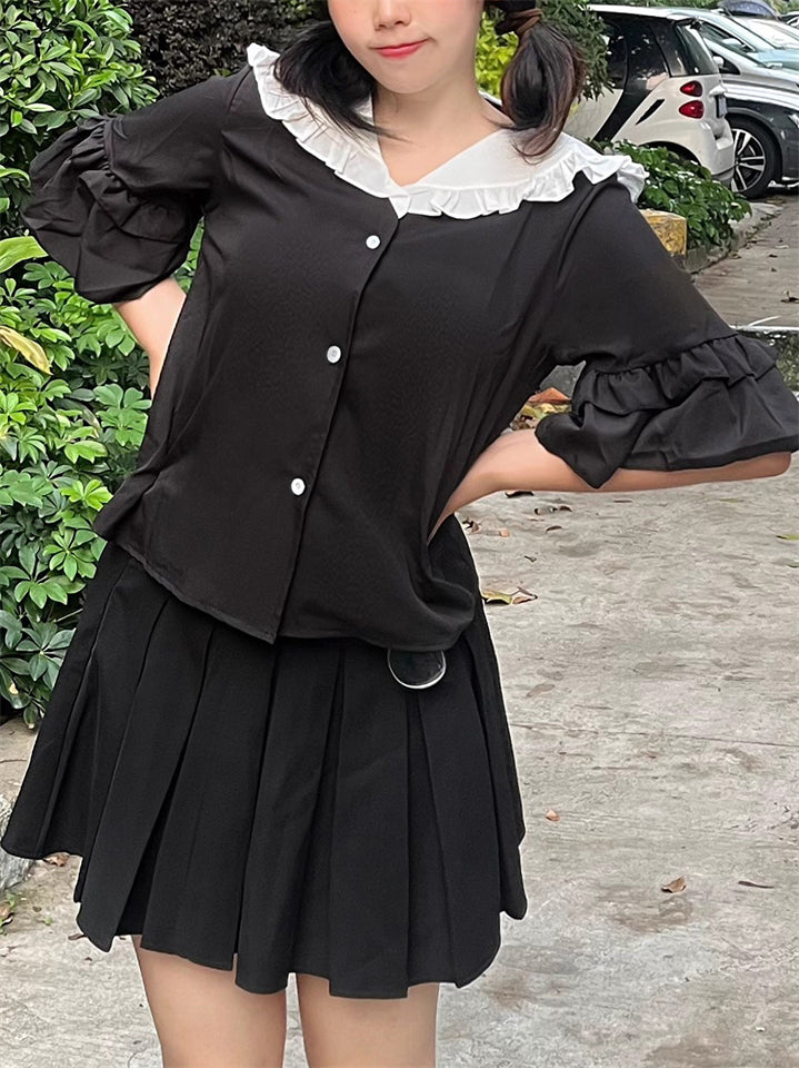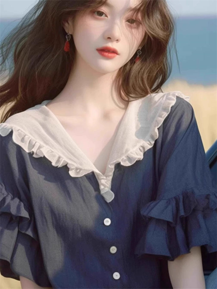 Women's Summer Contrast Color Lotus Short Sleeved Shirts