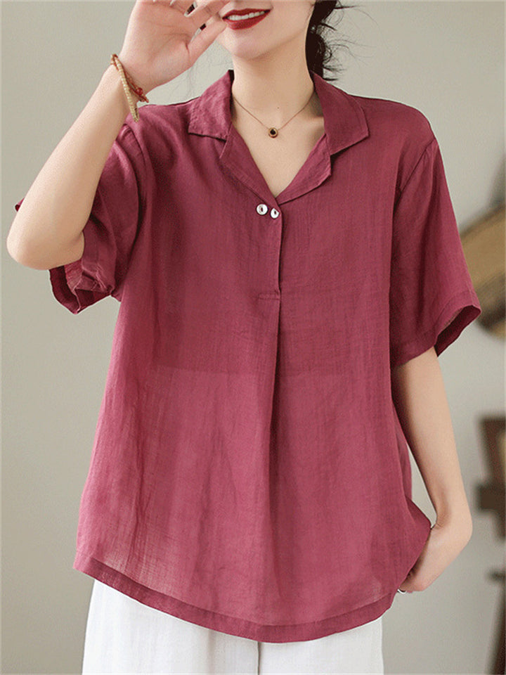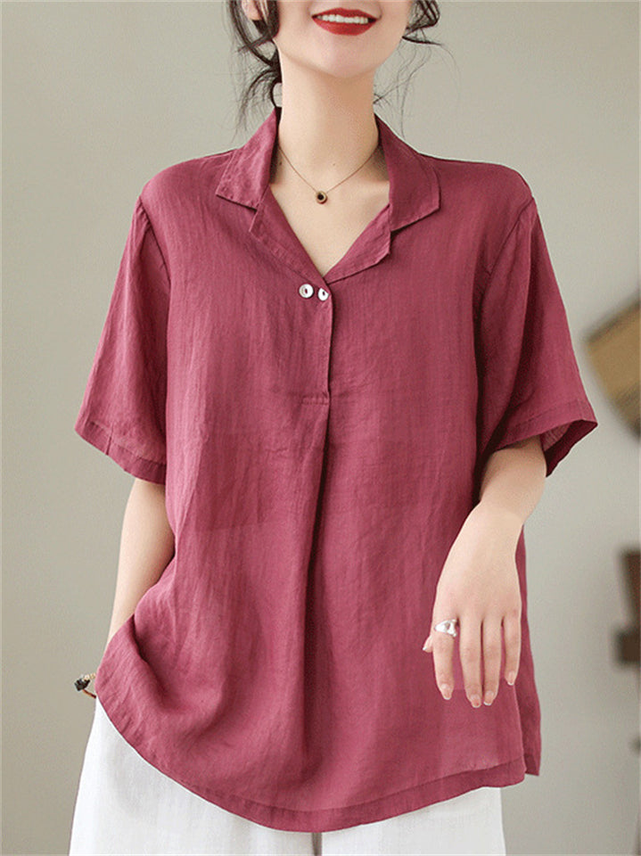 Women's Loose Solid Color Pullover V Neck Short Sleeve Shirts