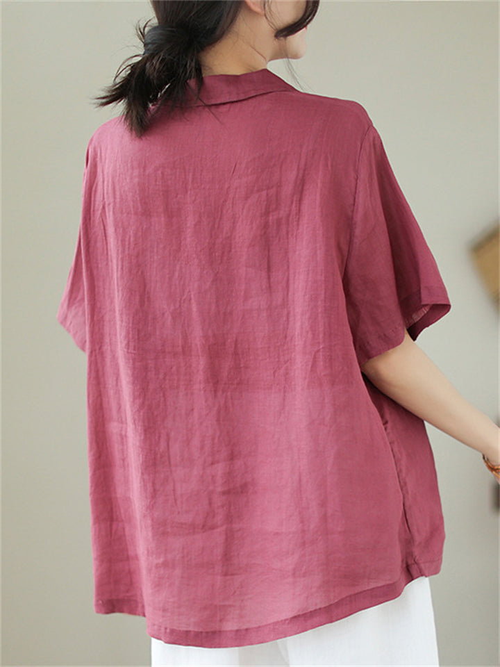 Women's Autumn New Cotton Linen Embroidered Loose Pretty Shirts