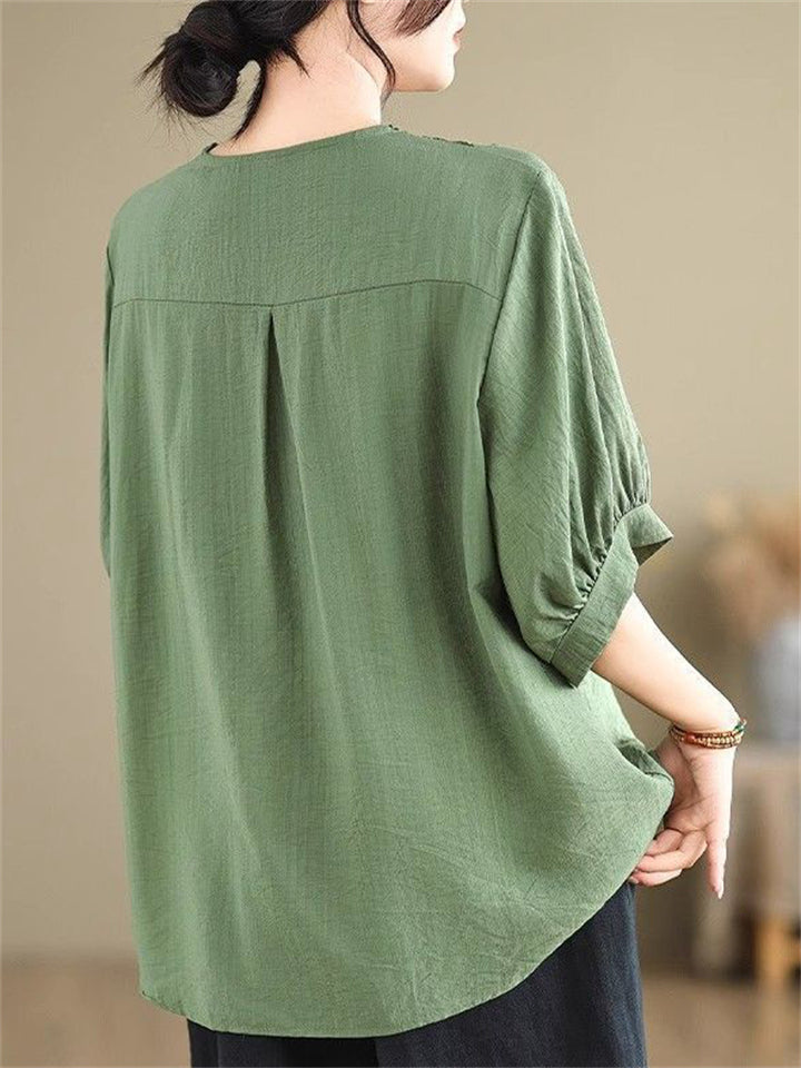 Description Product ID: TP2033268 Material: Cotton, Linen Sleeve: 3/4 Sleeve Pattern: ...