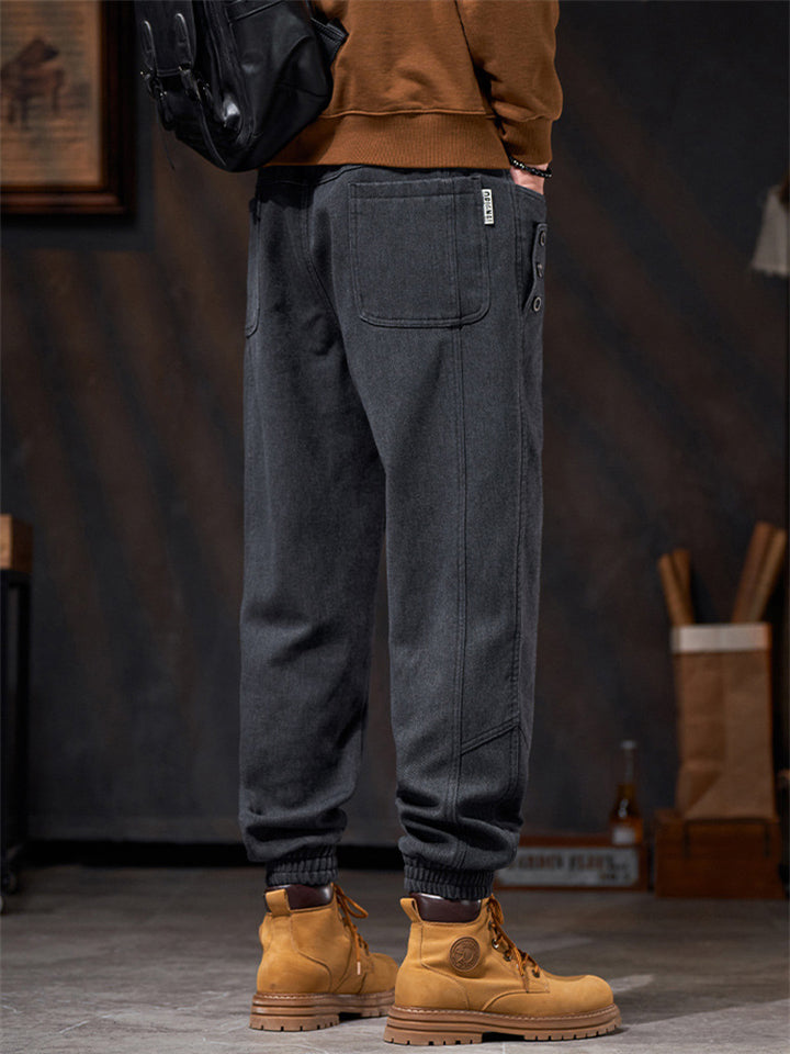 Men's American Style Loose Fit Casual Jogger Pants with Button Details Pockets