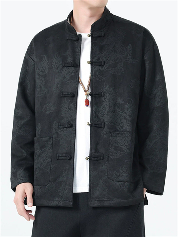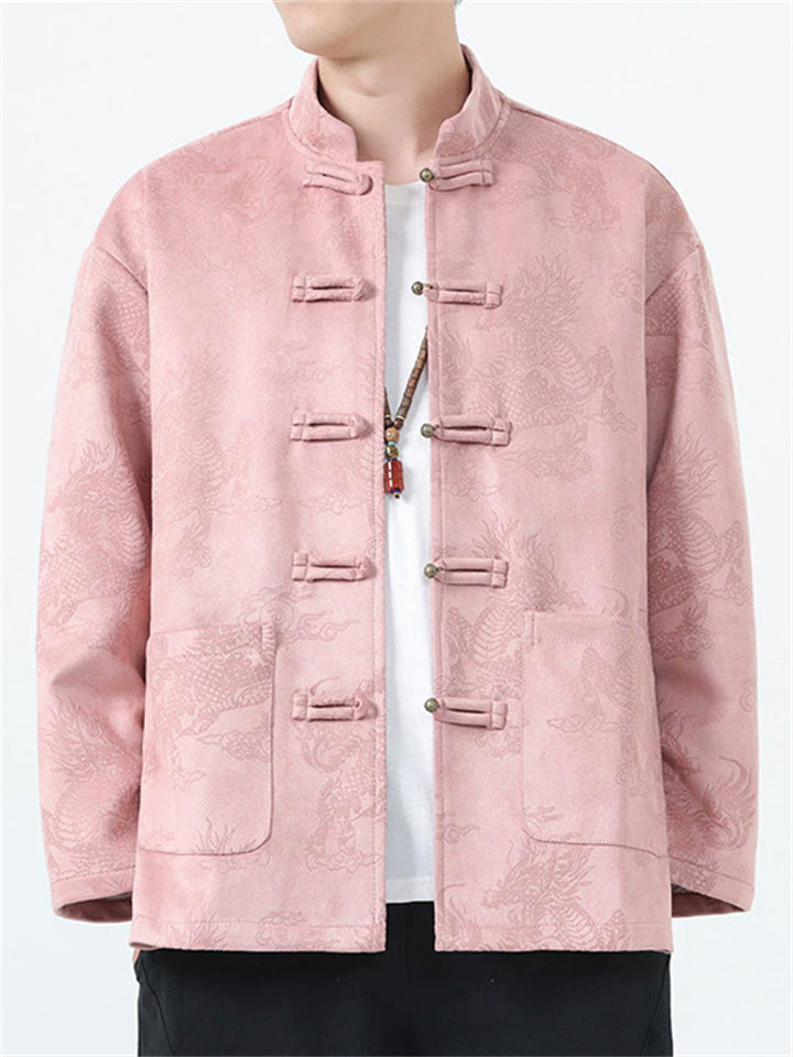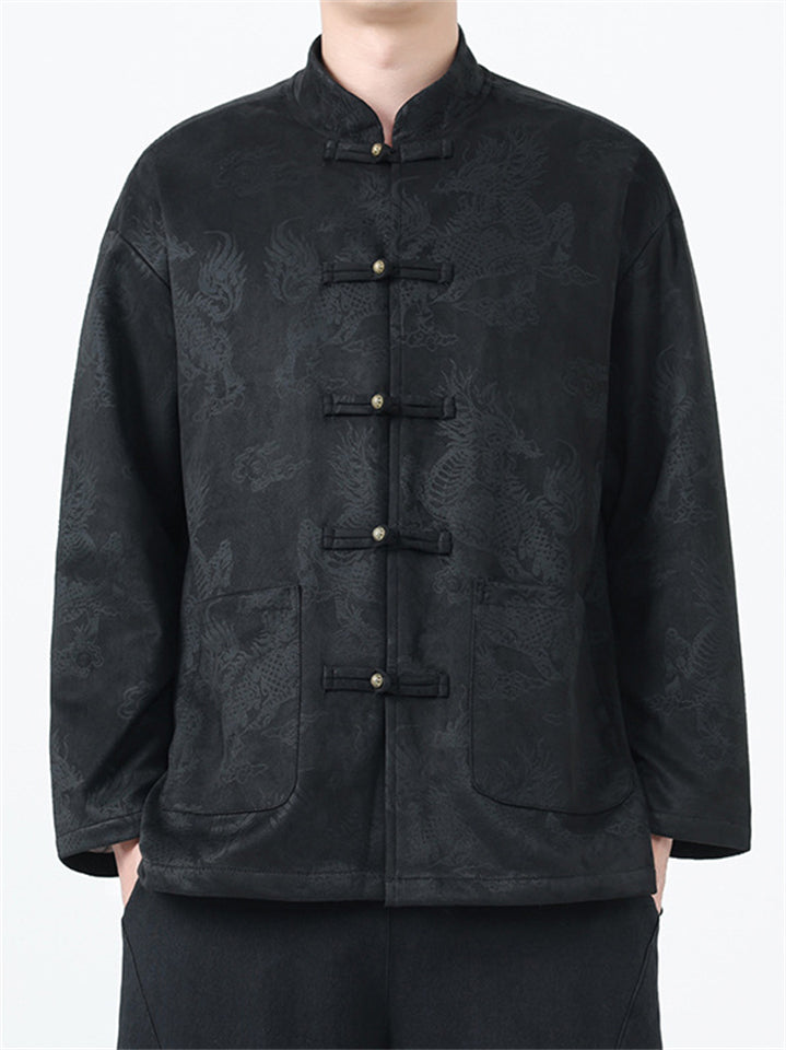 Men's Chinese Style Suede Stand Collar TangSuit Jacket with Loong Jacquard