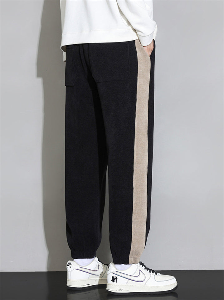 Men's Corduroy Loose Fit Casual Jogger Sweatpants with Side Stripes