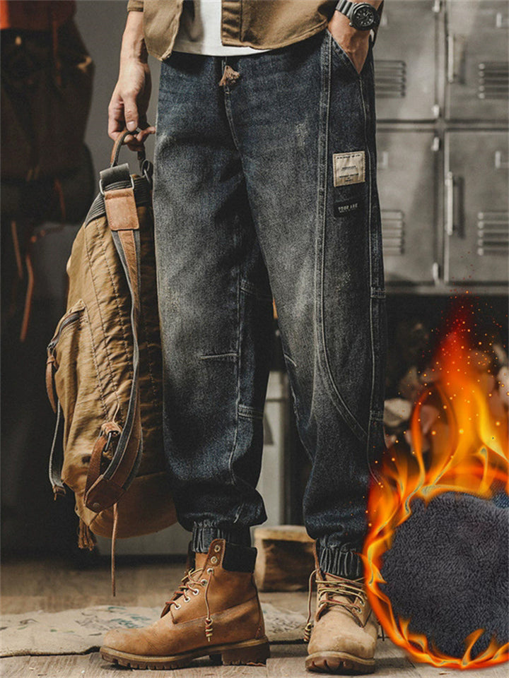 Men's Loose Fit Retro Denim Pants with Utility Pockets