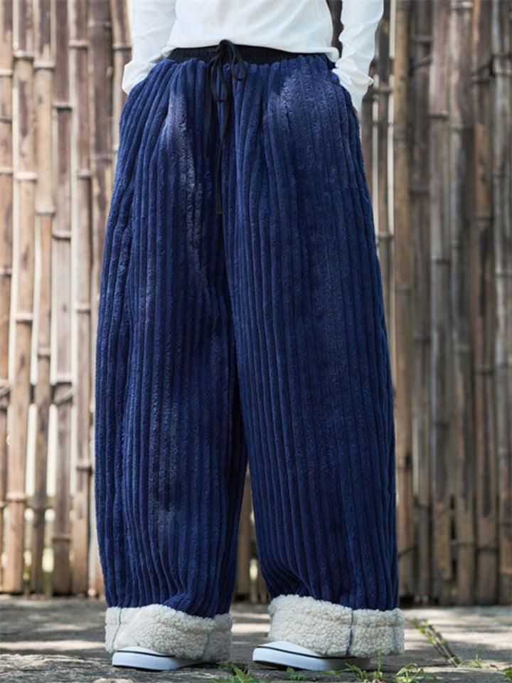 Men's Winter Retro Warm Thermal Lined Corduroy Drawstring Pants