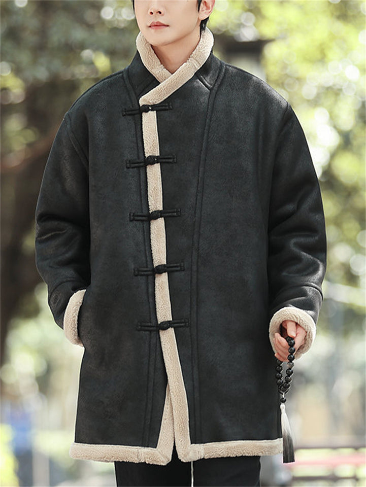 Men's Vintage Stand Collar Warm Padded Coat for Chinese New Year