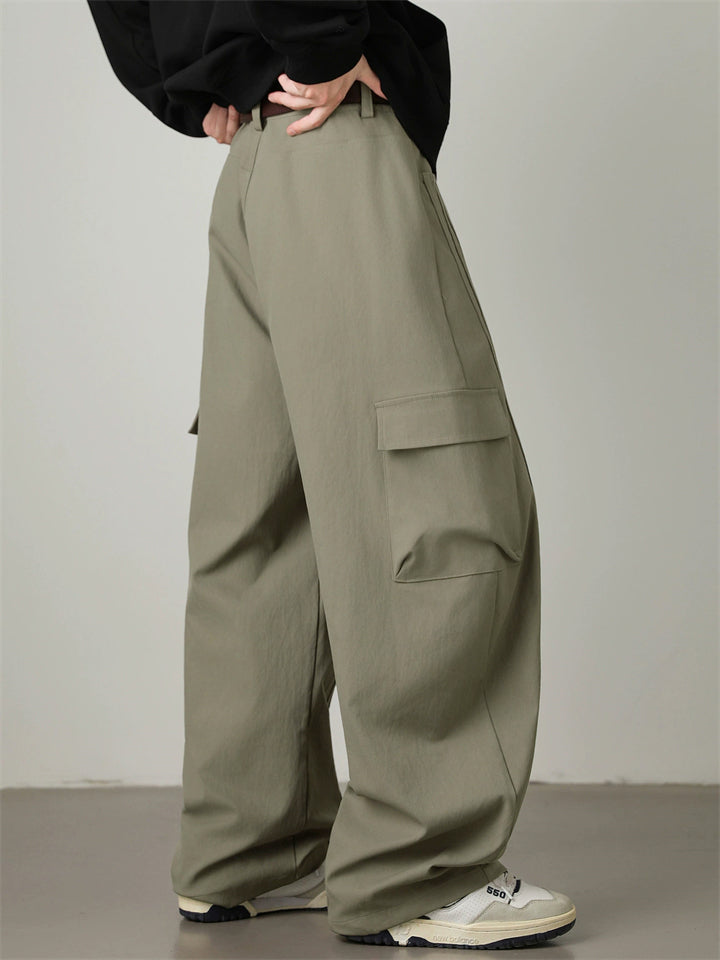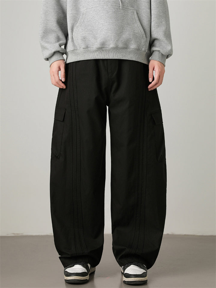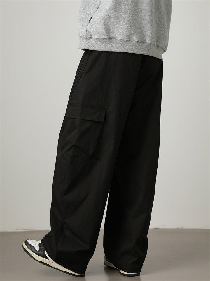 Autumn Pleated Loose Fit Pocket Drawstring Men Casual Cargo Pants