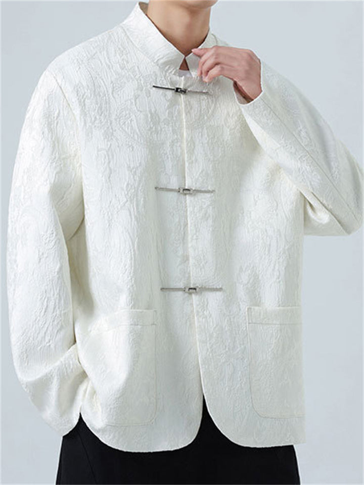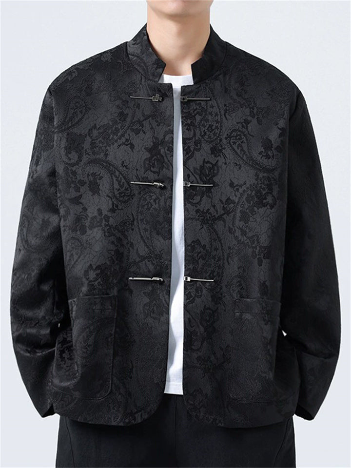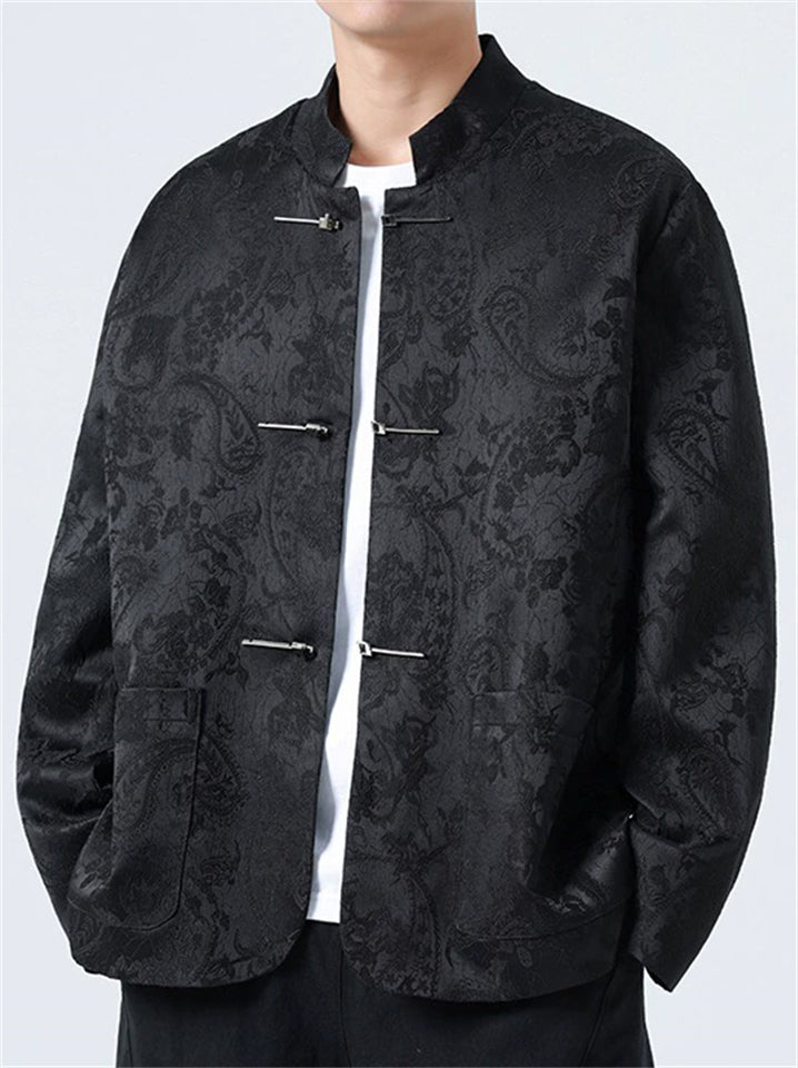 Chinese Style Cotton Blend Spring Autumn Paisley Jacquard Jacket for Men