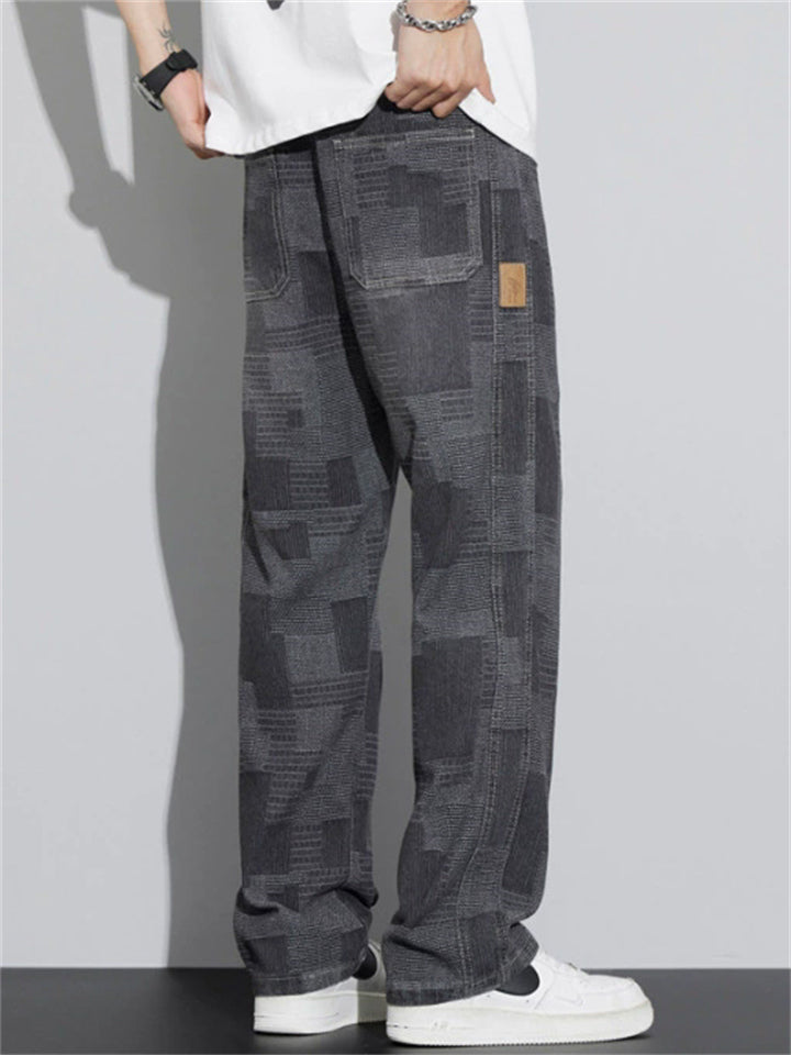 Men's American Retro Casual Spring Autumn Loose Straight Plaid Denim Pants