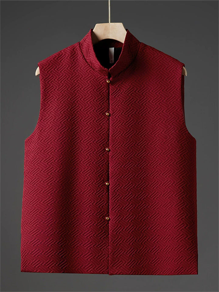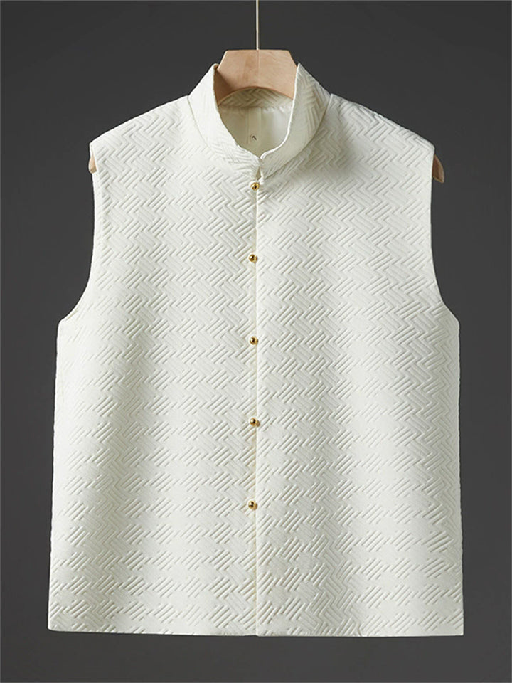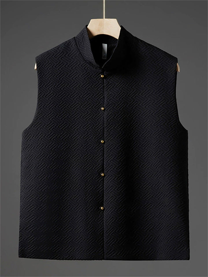 Men's Autumn Solid Color Geometric Jacquard Sleeveless Cardigan Jackets