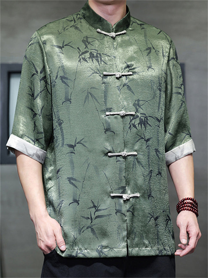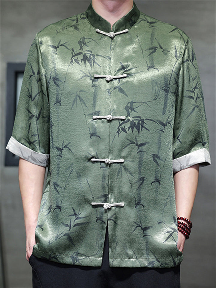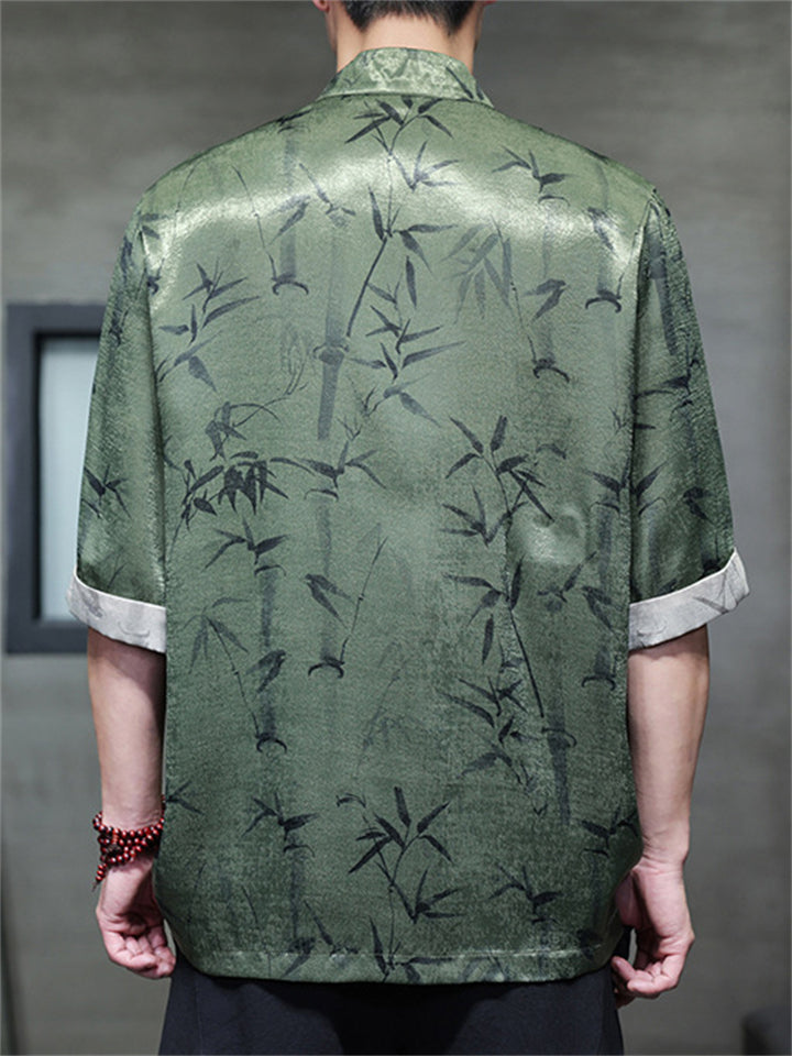 Men's Bamboo Print Cool Tang Suit Short Sleeve Chinese Style Shirts