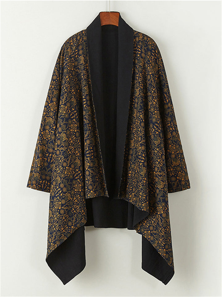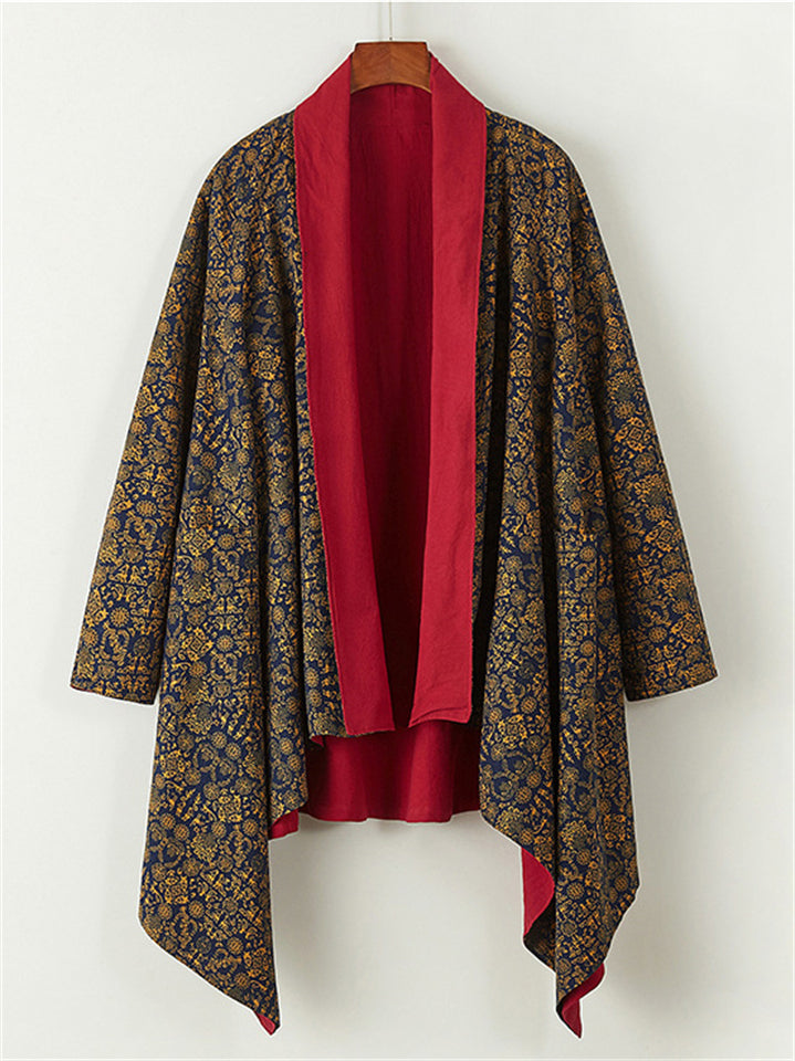 Men's Chinese Ethnic Zen Style Printed Reversible Cardigan Jackets