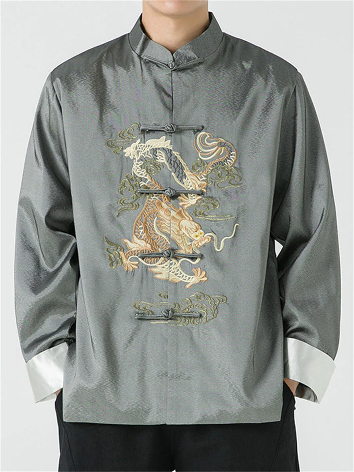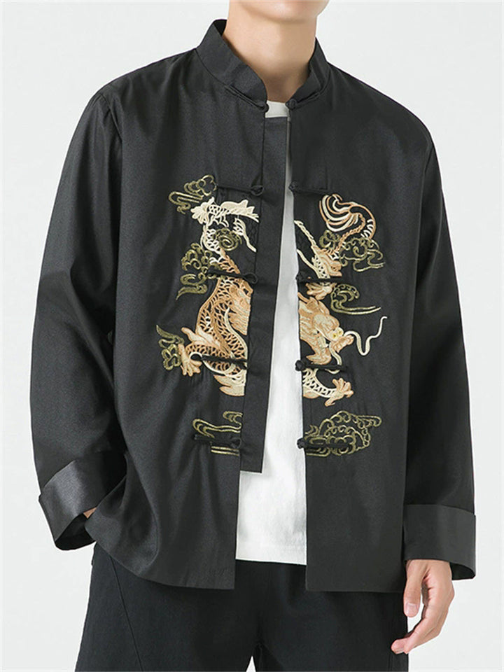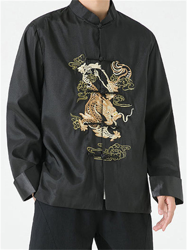 Men's Chinese Loong Embroidery Frog Button Tang Suit Jacket