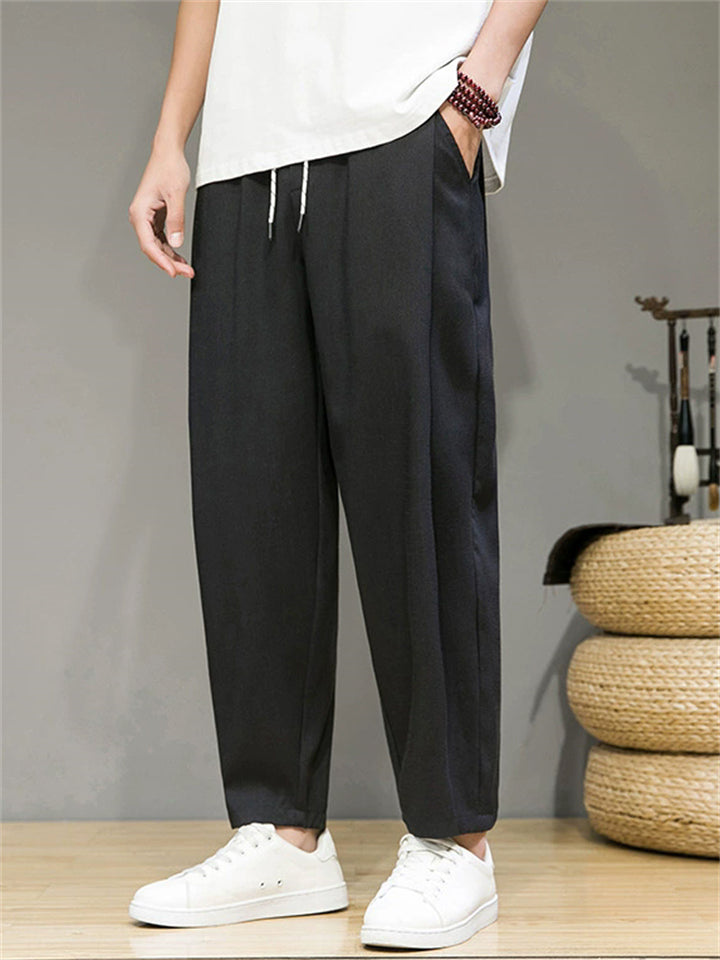 Men's Chinese Style Summer Lightweight Cotton Blend Loose Fit Cropped Pants