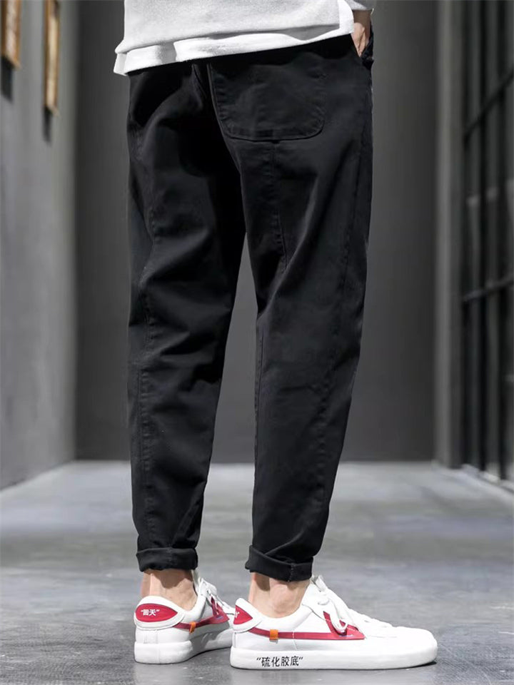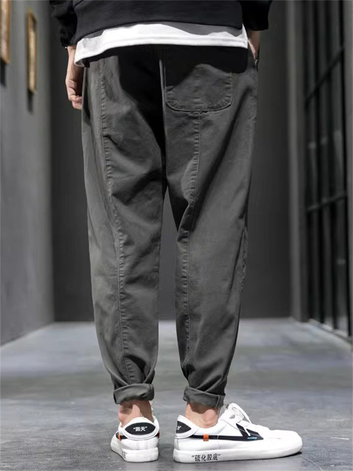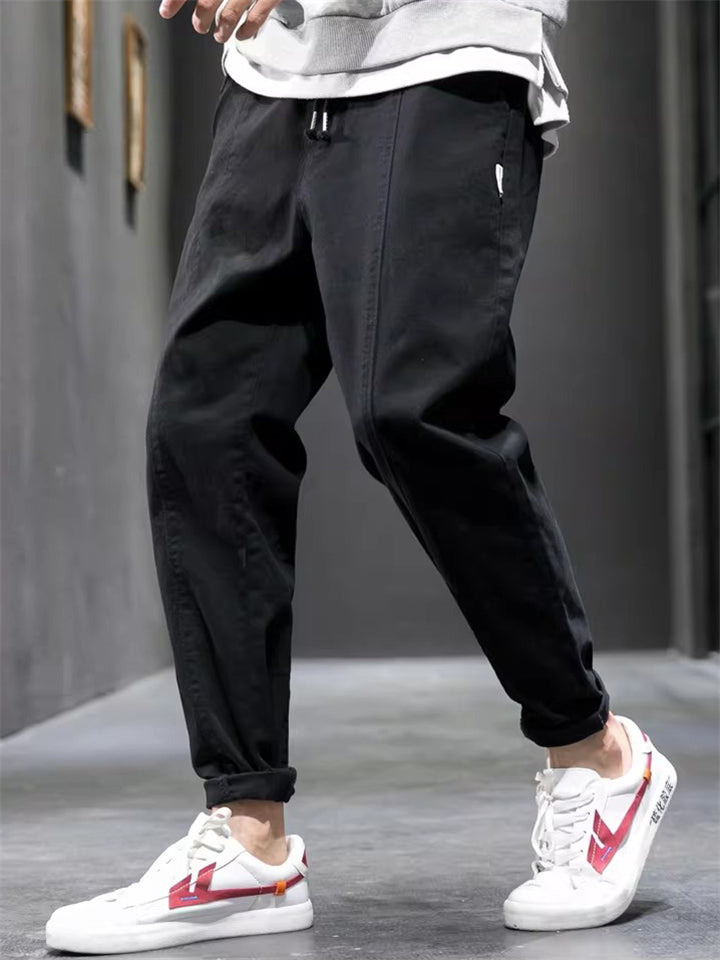 Men's Cotton Drawstring Casual Loose Fit Tapered Leg Cargo Pants
